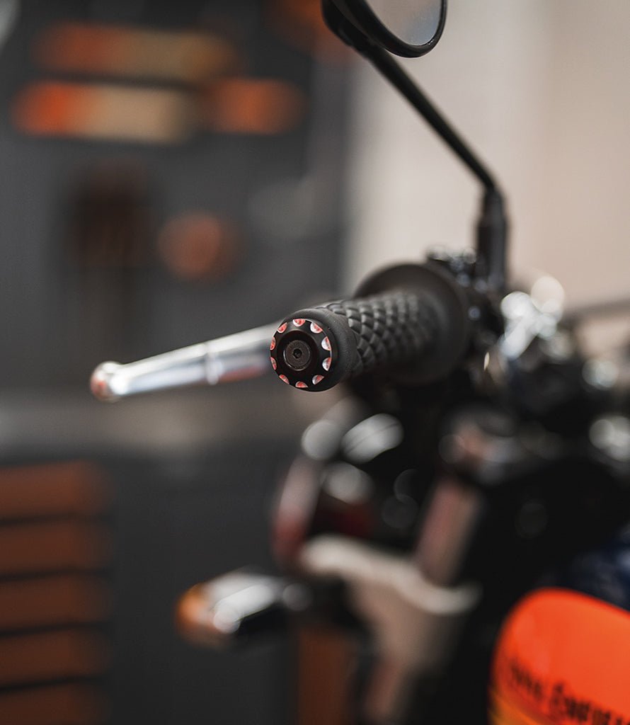 Personalizza la tua Royal Enfield con i terminali manubrio Cafe Twin Customs, progettati esclusivamente per Interceptor 650 e Continental GT 650. Realizzati in alluminio di alta qualità e verniciati a polvere in nero elegante, presentano dettagli a contrasto che donano luce e raffinatezza al manubrio.