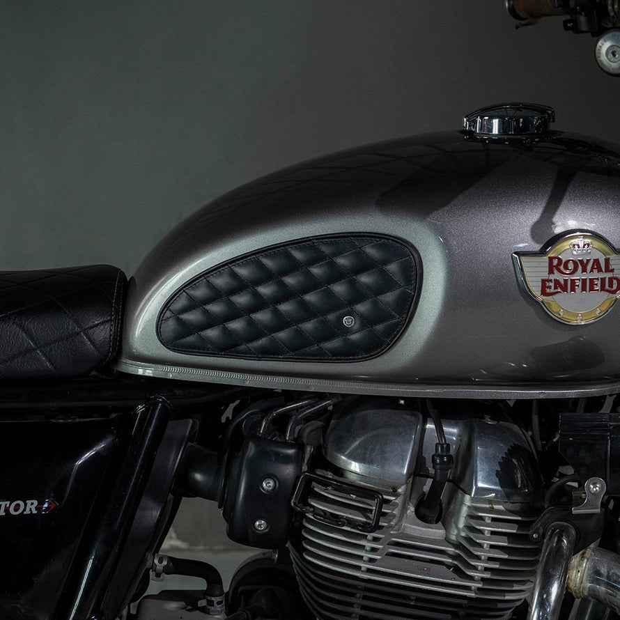 Die universellen Seitenschutz für Tank Diamond Schwarz aus Leder verleihen deinem Motorrad ein einzigartiges, hochwertiges Erscheinungsbild und schützen dein Tank zuverlässig vor Kratzern.