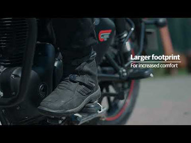 Fußrasten Schwarz Meteor 350, Classic 350 und Bullet 350 Royal Enfield vergrößert für besseren Fahrkomfort und ein hochwertigeres Erscheinungsbild des Motorrads.