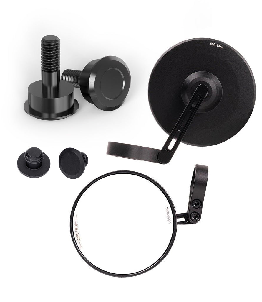 Motorcycle Mirror Kit Cafe Twin for BMW R nineT – Pair of SLIM Homologated Mirrors + Bar End Adapters + Mirror Hole Plugs