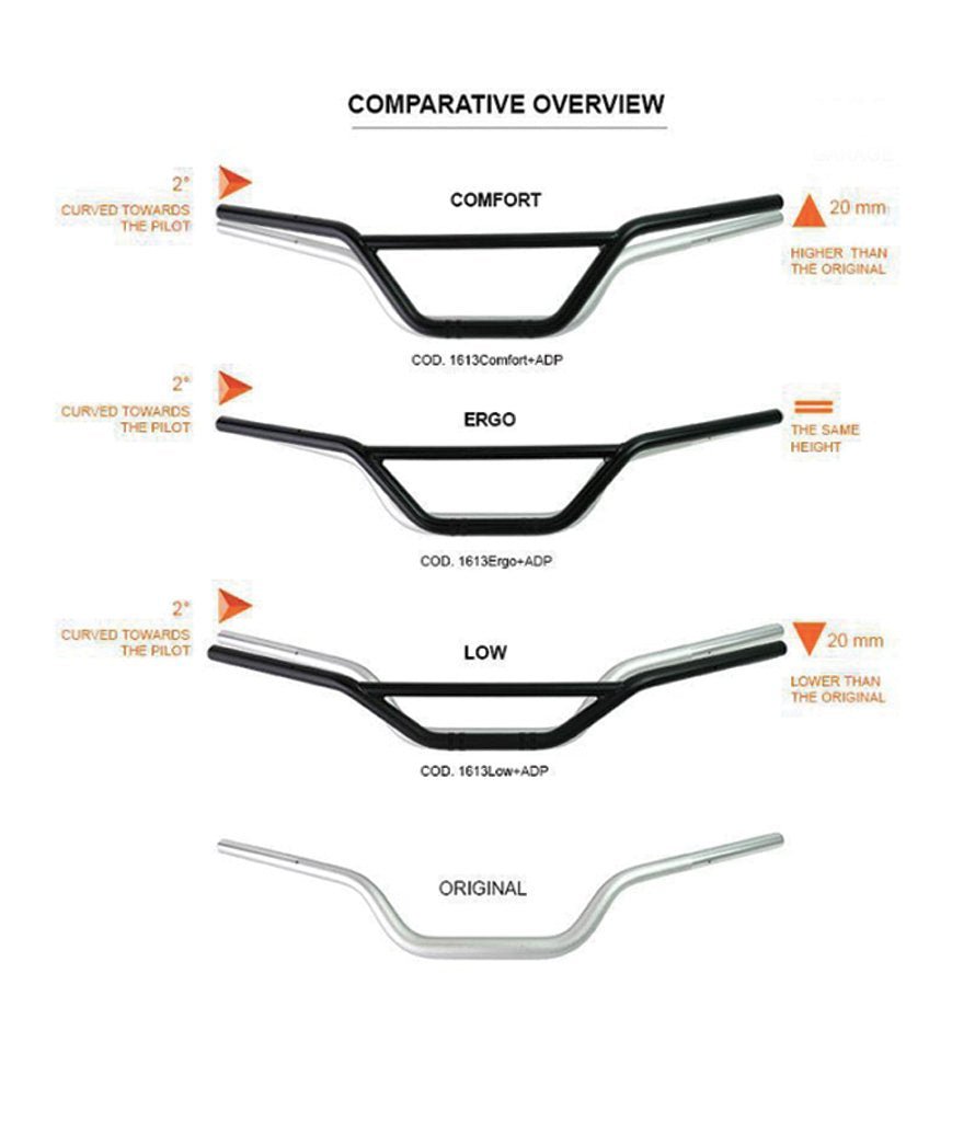 The 1613 Low handlebar is taller than the original and has a more comfortable bend. (see measurements on the specification sheet)
