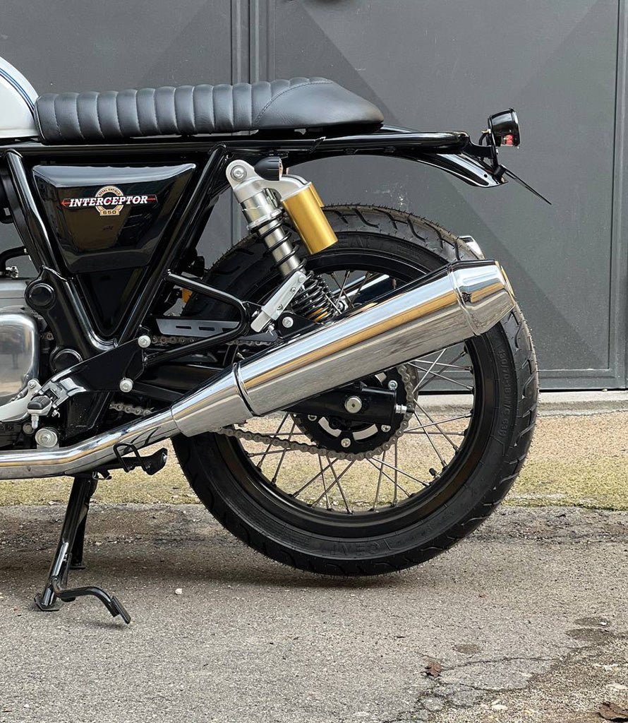 The license plate holder for Royal Enfield Interceptor 650 and Continental GT 650 is designed to be mounted on the original fender, offering a clean and minimal aesthetic. Created by our designers, the kit includes a Tail Light CE-approved with integrated license plate light, plug & play wiring, and brackets for turn signal indicators.