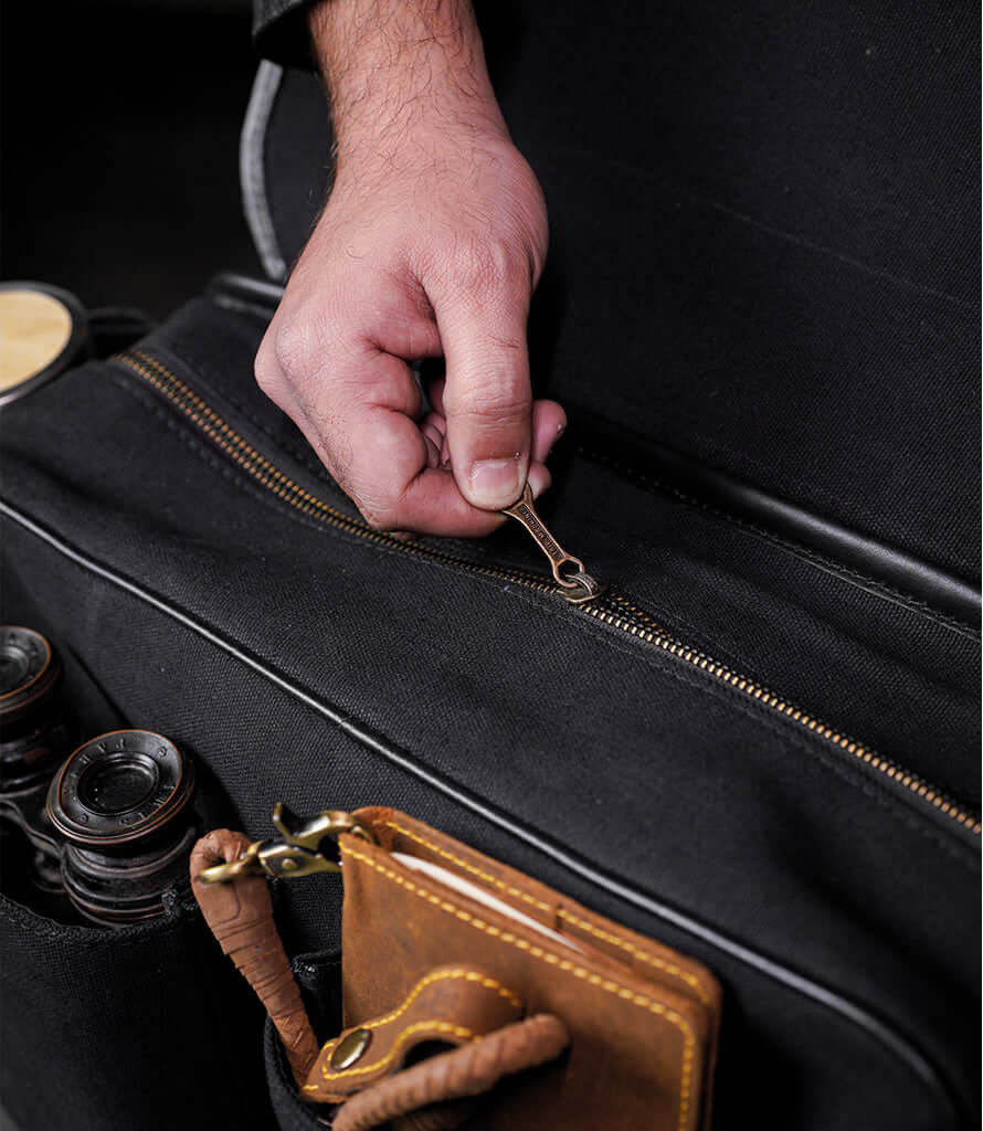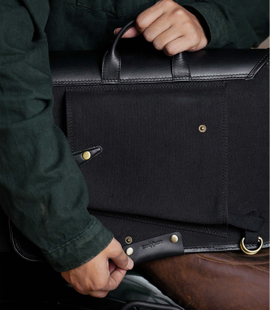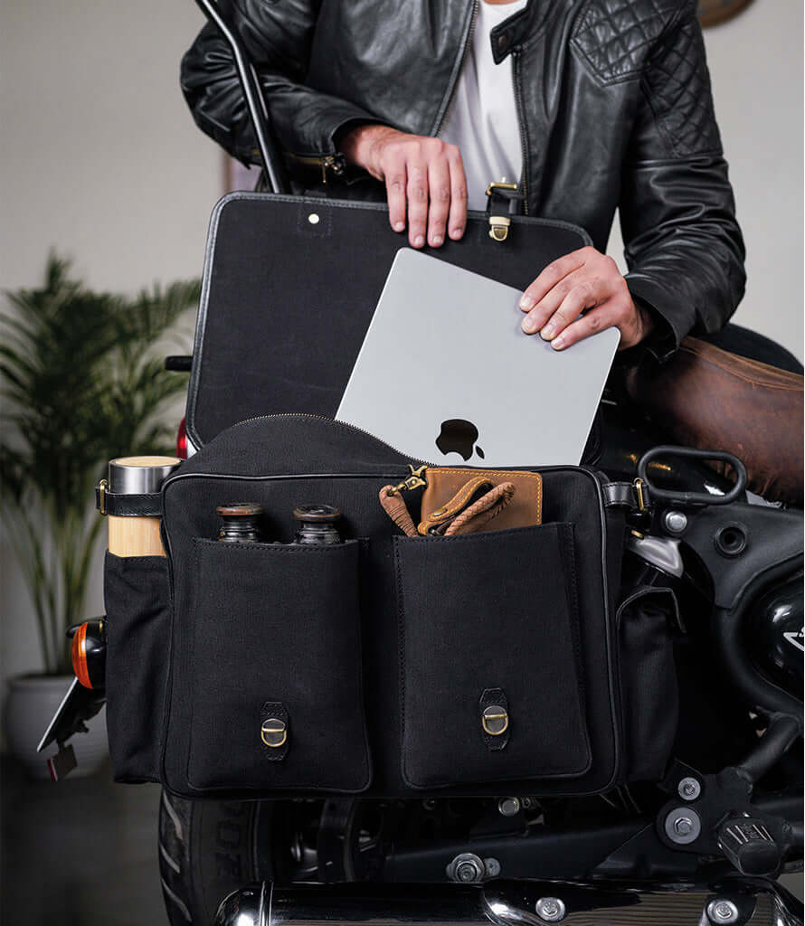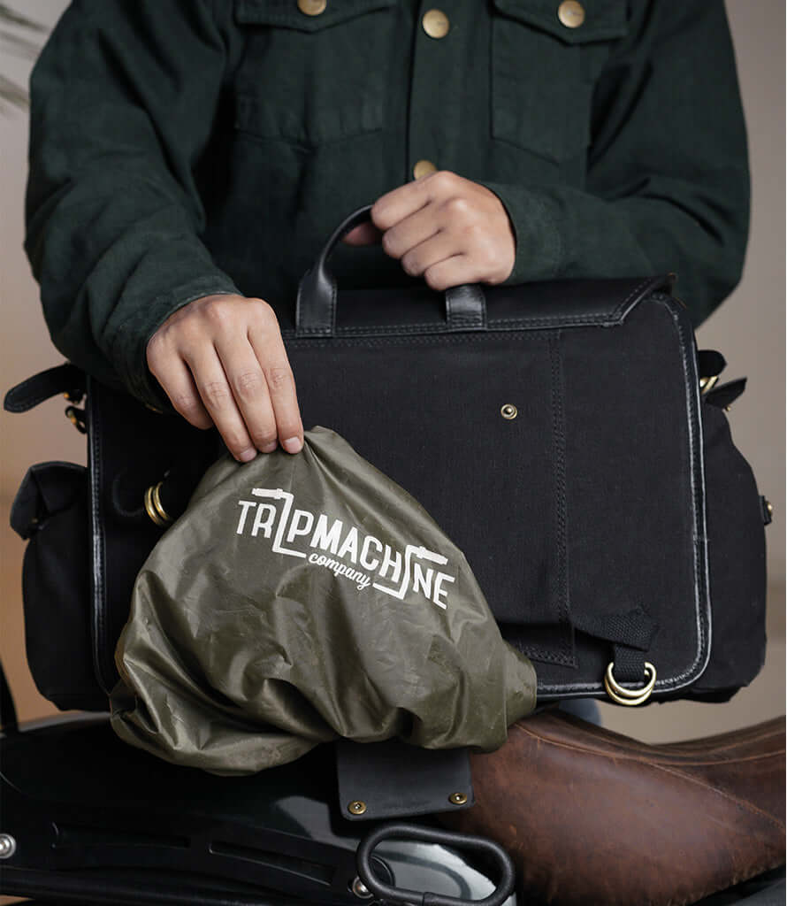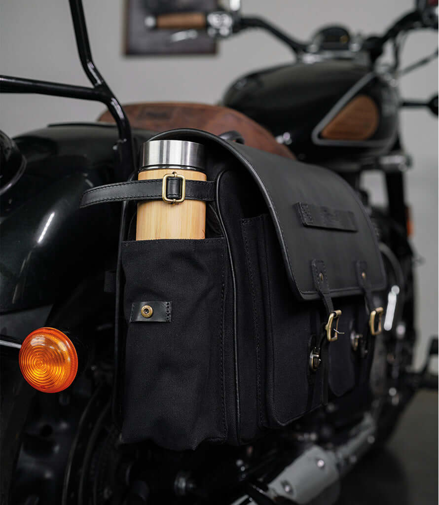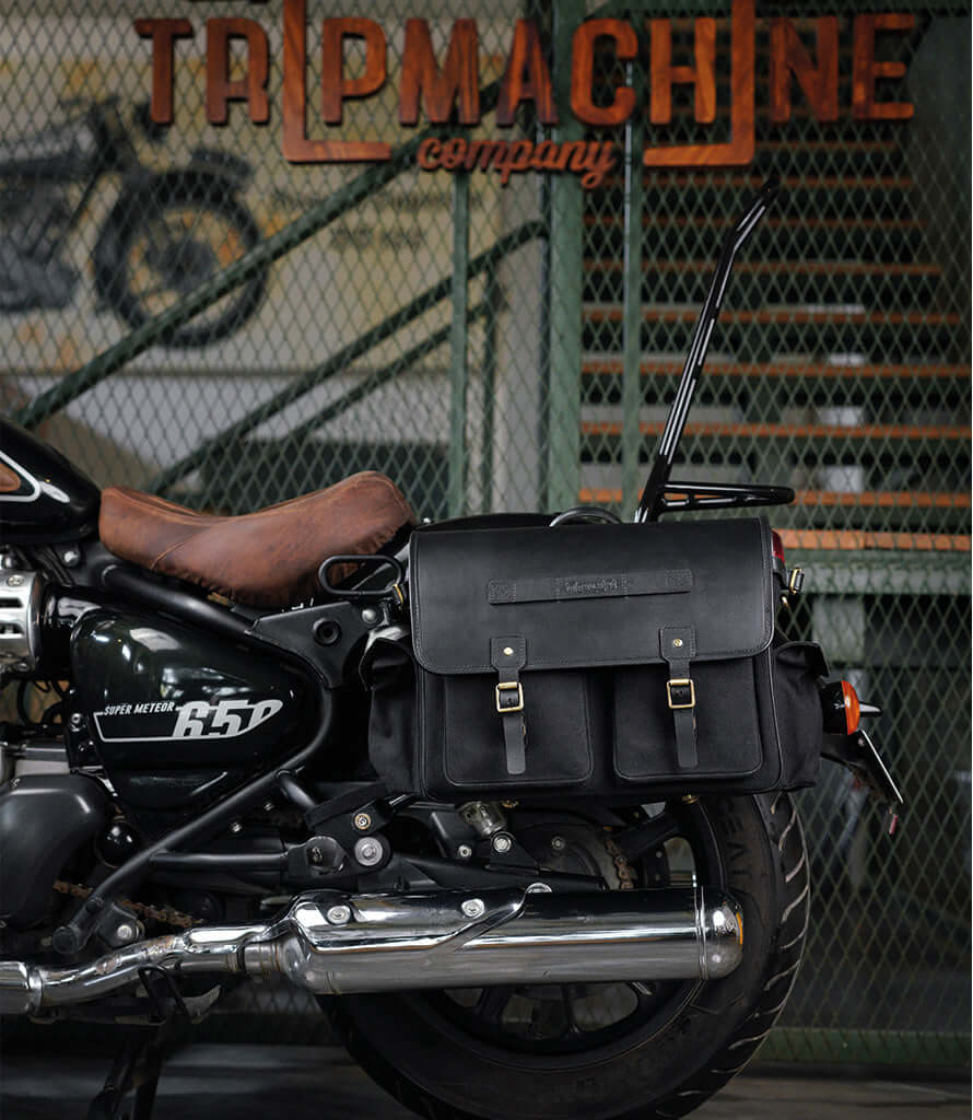 Made from heavy-duty 16 oz canvas combined with the distinctive premium leather Trip Machine, these Saddlebags ensure durability, longevity, and an authentic aesthetic.