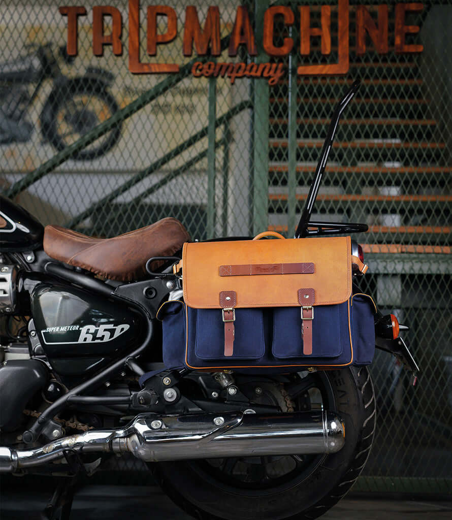 Saddlebag Moto Expedition Blue and Tan - Right -  Trip Machine