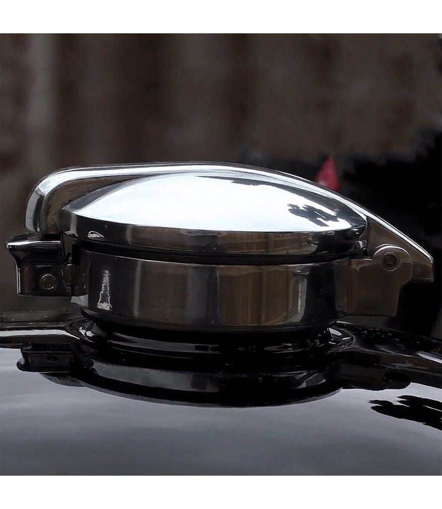 Iconic Monza style fuel cap made by Motone using modern HIGH PRESSURE DIE CAST technique with a glossy finish.