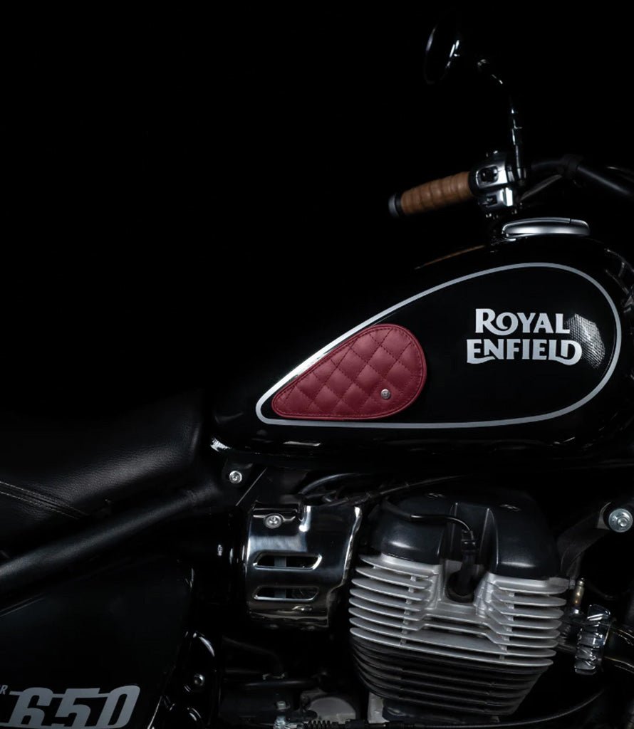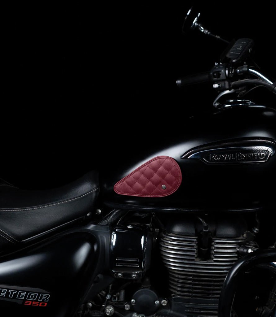 The Tear Drop Rossi tank protectors are designed for curved-shaped tanks. Engineered for Royal Enfield Meteor and Super Meteor, they also fit the Harley Softail & Dyna series, Indian Chief, etc.+