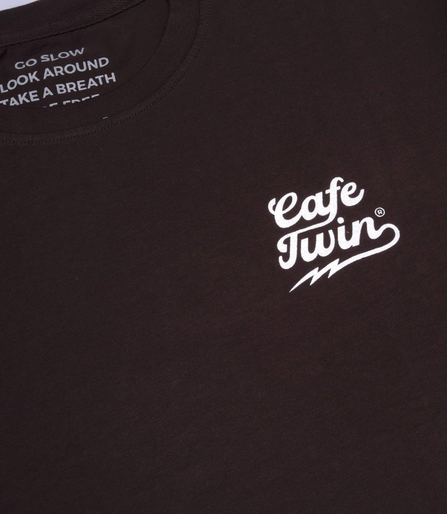 The Cafe Twin Lightning Brown T-Shirt is a short-sleeved motorcycle t-shirt designed for those who live the custom and café racer culture even when off the bike. Made from high-quality cotton, it offers comfort, breathability and a natural fit for everyday wear. The Cafe Twin logo with Lightning graphic printed on the left chest adds a distinctive and recognisable detail, perfect for riders and enthusiasts of vintage style and garage culture.
