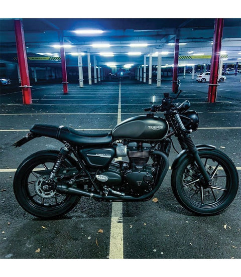 Transform your Triumph Bonneville T100 Liquid-Cooled with the best Exhaust custom available at Cafe Twin.