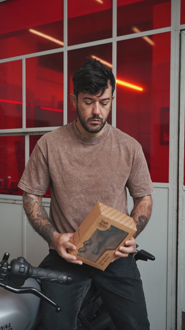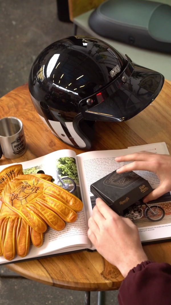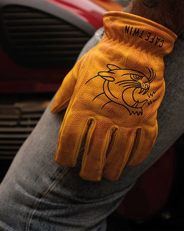 Gants Cafe Twin en cuir vintage, marqués par la route, faits pour rouler