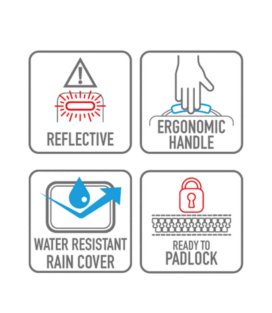 Équipement : La sacoche MT501S dispose d’inserts latéraux réfléchissants pour une meilleure visibilité en route, de poches latérales en maille pour organiser facilement vos effets, d’une housse imperméable pour protéger vos affaires des intempéries, d’une poignée ergonomique pour le transport à la main, et d’un curseur de fermeture éclair compatible avec un cadenas de sécurité, pour voyager l’esprit tranquille.