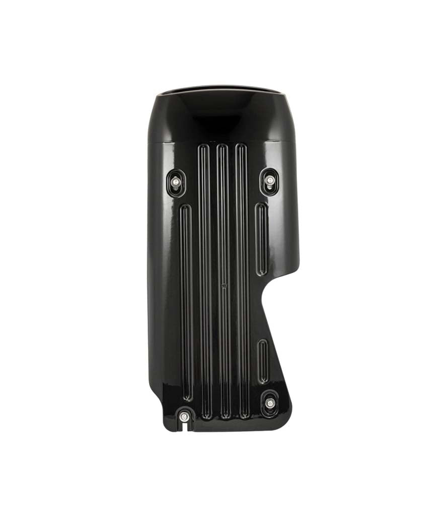 Fabriqué en ABS injecté et fini avec une peinture noire brillante de qualité automobile, il est complété par une grille en aluminium perforé.