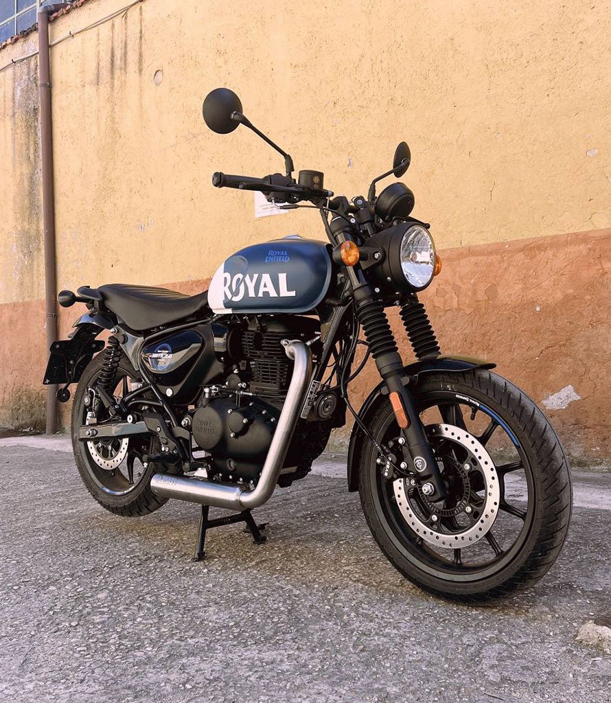 Véritable icône de style, voici le Échappement Complet Cross 1in1 de Cafe Twin x Mass Exhaust pour HNTR 350 Royal Enfield.