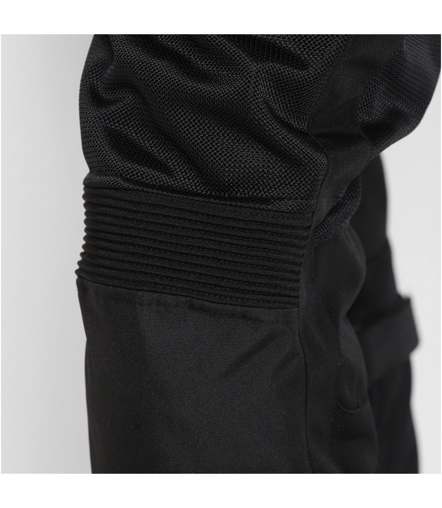 Des empiècements extensibles type accordéon aux genoux et à l’arrière offrent une totale liberté de mouvement. Les zips en bas de jambe facilitent l’enfilage et le retrait, même avec des bottes Moto hautes.