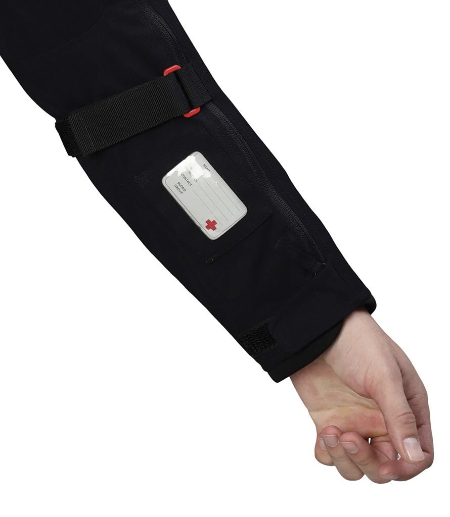 - Ajustement entièrement personnalisable grâce à des pattes sur les poignets, la taille, les biceps, les avant-bras, les coudes et le col.