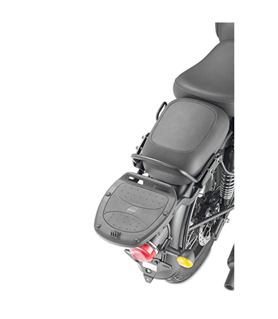 Fixation spécifique pour top cases GIVI sur Royal Enfield Classic 350 de 2022 à 2025 : elle facilite le transport de sacs souples ou le montage des top cases MONOLOCK®. Voyager avec ses bagages n’a jamais été aussi confortable !