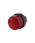 Fanale posteriore tondo modello con funzioni di luce di posizione, luce freno e luce targa realizzato in plastica nera con vetro Rosso.