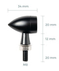 La coppia di frecce moto Lunar 2-in-1 E24 combina freccia e luce di posizione in un unico corpo elegante e compatto, ispirato alla forma pulita di un proiettile. Perfette per moto custom, cafe racer, scrambler e vintage, offrono un aggiornamento estetico e funzionale in linea con uno stile minimal e moderno.