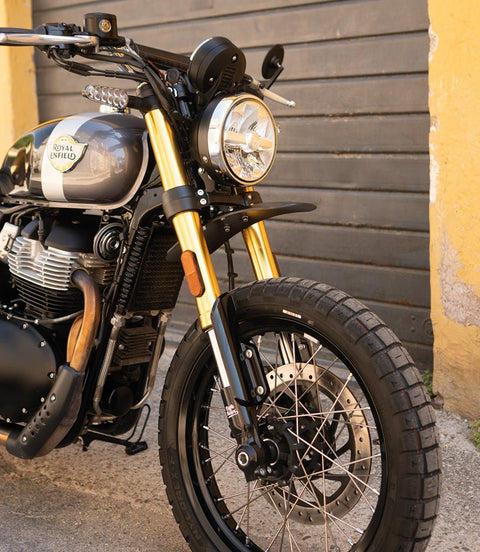 Disponibile in verniciatura a polvere opaca o lucida, è il tocco definitivo per trasformare la tua Royal Enfield Bear 650 in una creatura da trail, pronta a mangiare sentieri e a farsi notare anche in città.