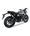 Scarico slip-on Ixil dallo stile aggressivo e finitura curata, pensato per esaltare il look e il sound della Honda GB350. Il silenziatore conico è realizzato in acciaio inox AISI 304 con verniciatura nero opaco, mentre il fondello conico è anch’esso in acciaio inox per garantire resistenza e durata nel tempo.